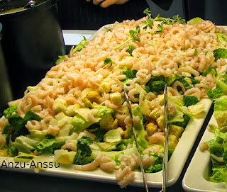 Onneksi oli myös vähän kevyempääkin tarjottavaa salaatin muodossa, vaikkei se minun vatsa-parkaani pelastanutkaan, kun päästiin jälkiruokaan...